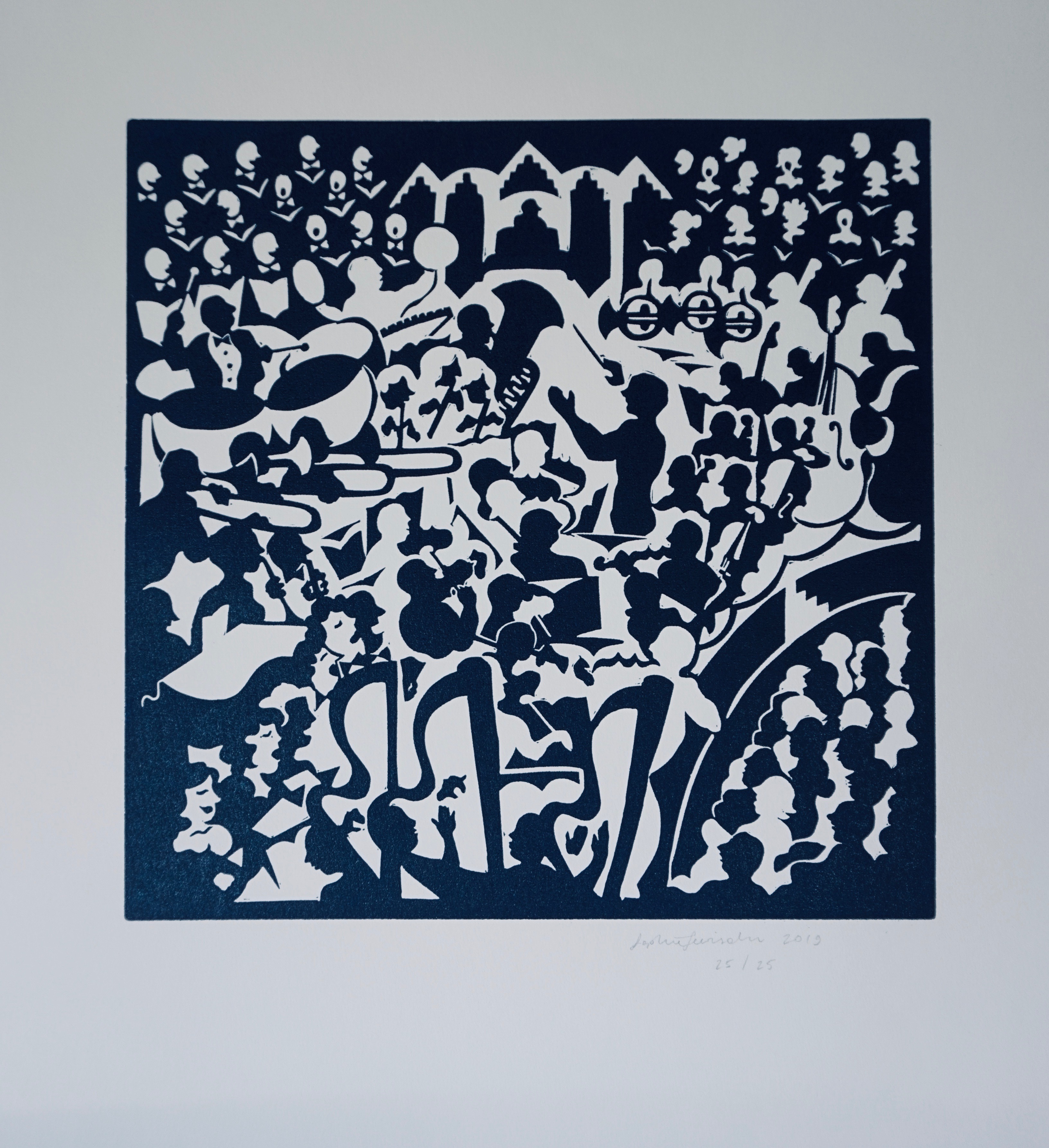 Symphony of a Thousand printed area 30.5 x 30.5 cm; paper 40.5 x 46 cmlimited editions :Prussian blue: 25Carbazole violet (appears warm black): 12Green: 25Blue on Marpa Jansen brown paper: 5Magenta: 5Burnt sienna: 5 Share this: Click to share on X (Opens in new window) X Click to share on Facebook (Opens in new window) Facebook Like Loading... Posted on 17th Dec 202117th Dec 2021